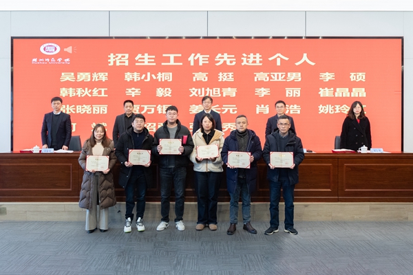 舒志定宣读表彰文件。经济管理学院、人文学院、外国语学院、工学院被评为2024年度招生工作先进集体;教育学院(教师教育学院)、体育学院、生命科学学院、医学院(护理学院)被评为2024年度就业工作先进集体;吴勇辉等18人被评为2024年度招生工作先进个人;李军等41人被评为2024年度就业工作先进个人。