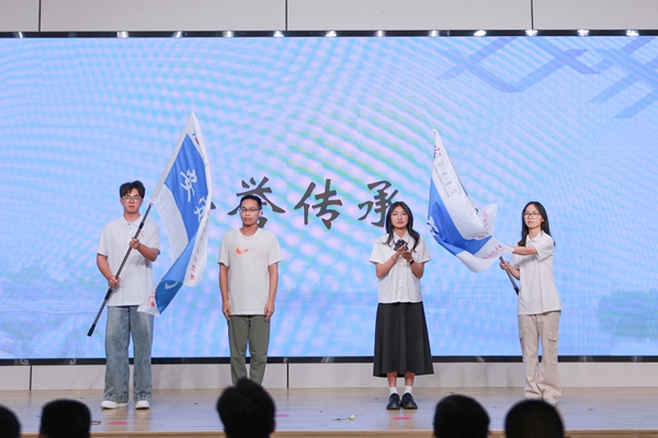 院旗交接仪式上,大三学子从毕业生代表手中接过院旗,象征“志存高远,守正创新”的精神在一代代安定学子中传承。典礼在表达青春离别与成长的大合唱《凤凰花开的路口》中落下帷幕。